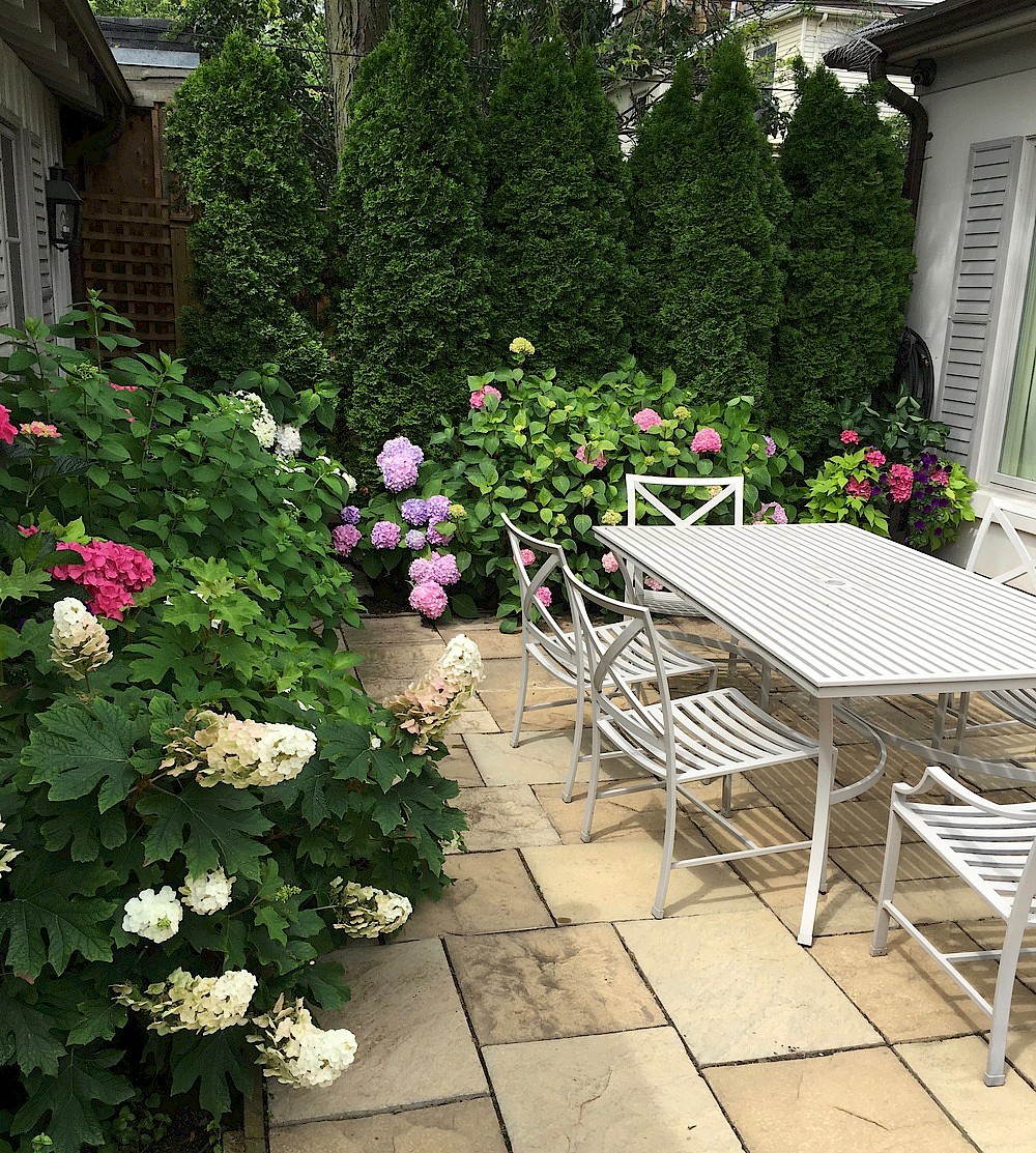 We rearranged the existing shrubs and added some large Chameacyparis obtusa